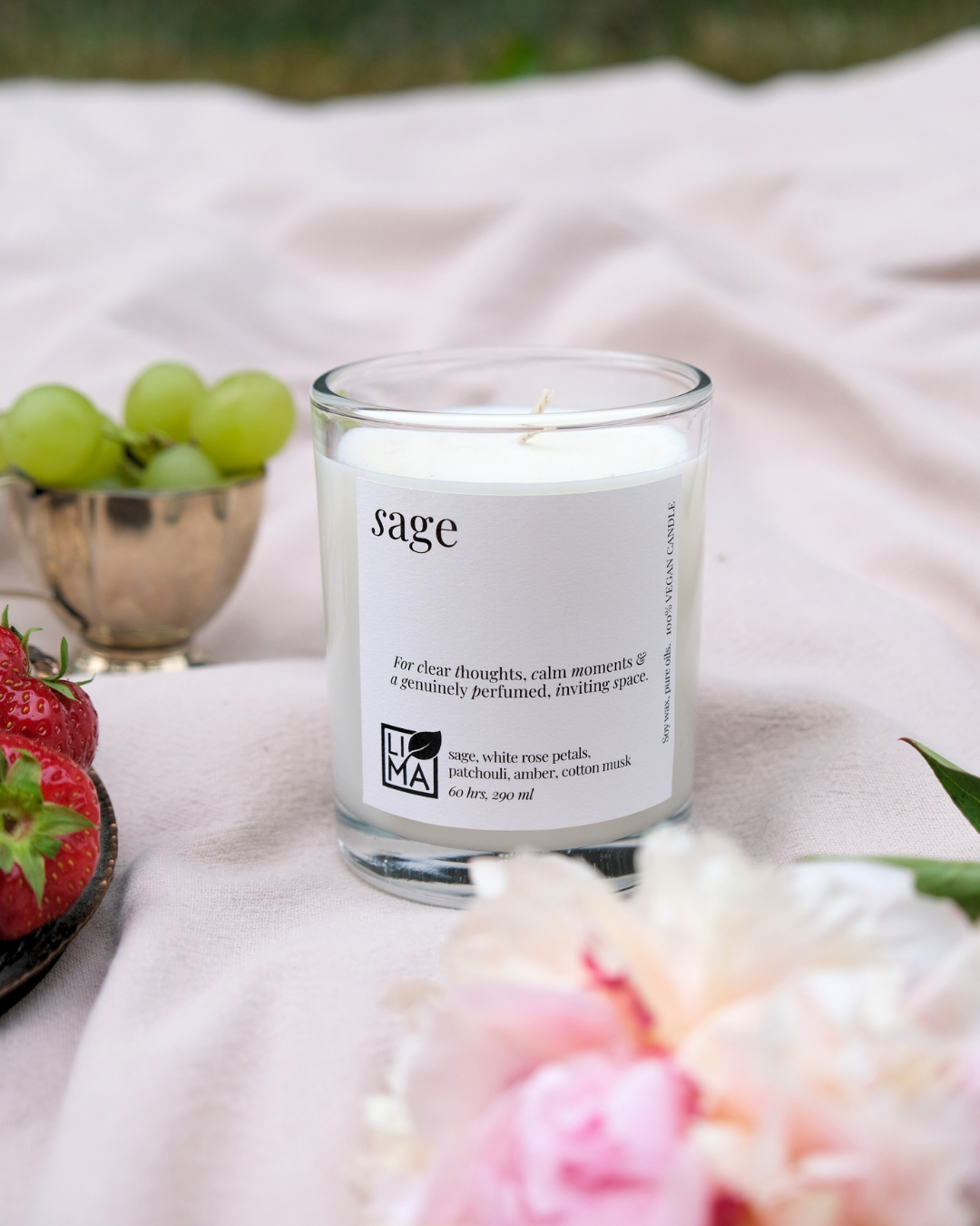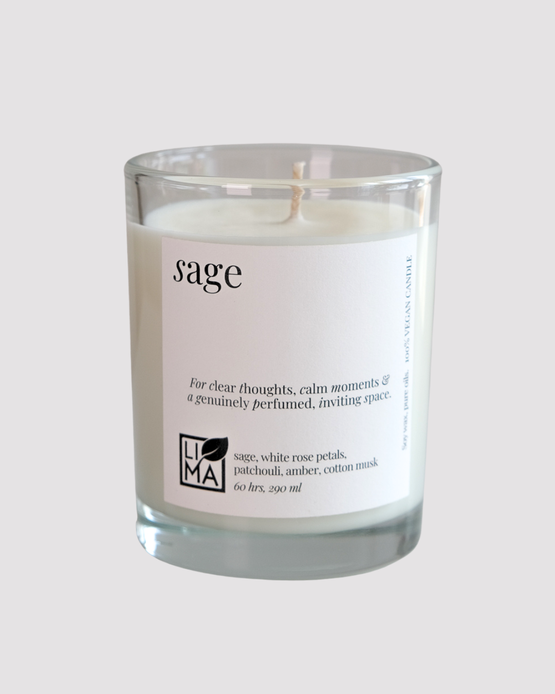 Diese große Kerze verströmt pure Ruhe und stilvolle Eleganz. Sanfter Salbei trifft auf florale Noten weißer Rose – eine harmonische Verbindung aus Kräuterfrische und Blütenschimmer. Erdendes Patchouli und weicher Baumwoll-Moschus verleihen dem Duft Tiefe und einen Hauch von Luxus.