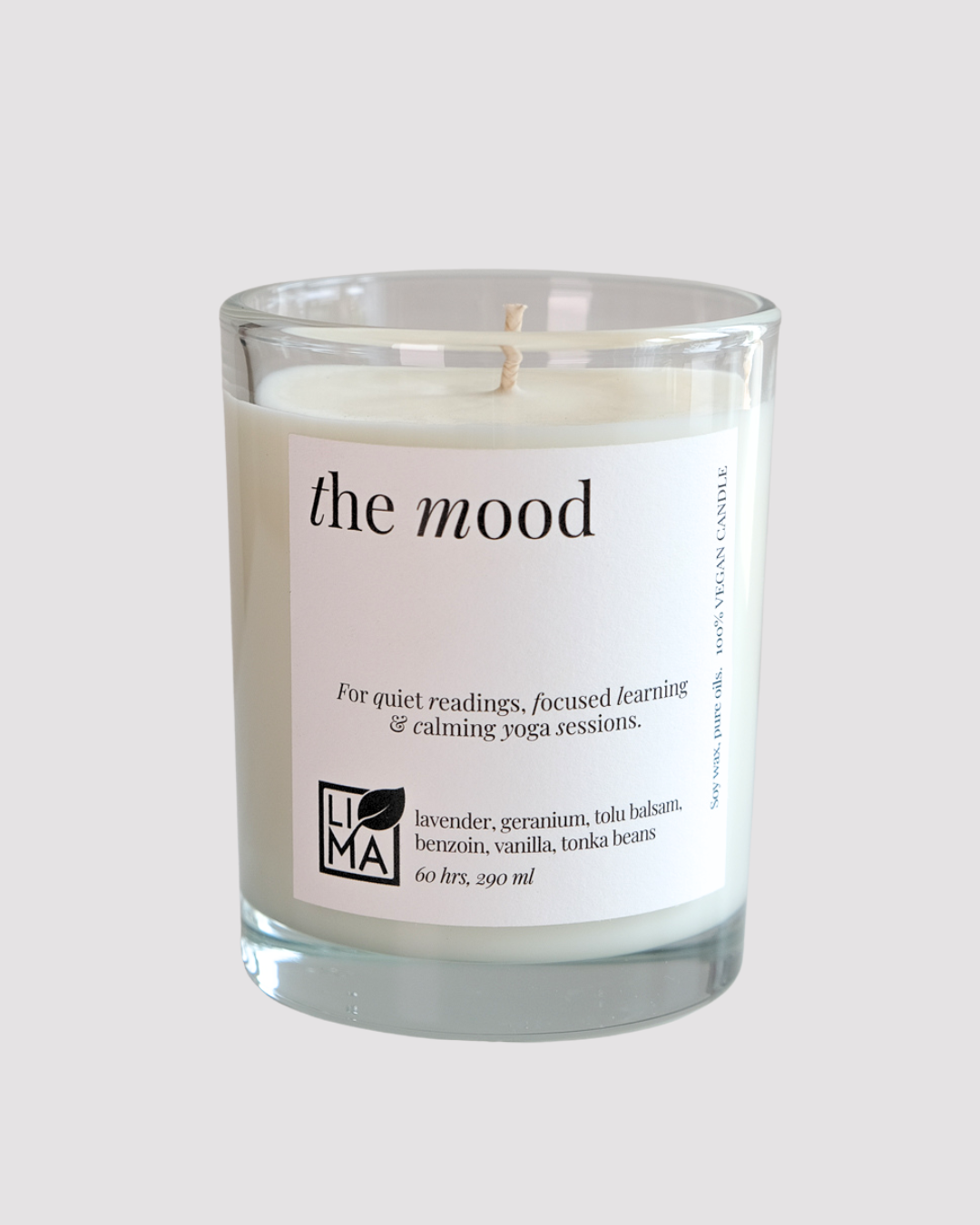 Die große The Mood Kerze entfaltet eine harmonische Komposition aus echtem Lavendel und frischer Geranie – wie ein Abendspaziergang durch einen blühenden Kräutergarten. Edler Tolu-Balsam und warme Benzoe schenken dem Duft Tiefe und balsamische Weichheit. Vanille und Tonkabohne vollenden das Dufterlebnis mit einer cremigen, kaschmirartigen Note.
