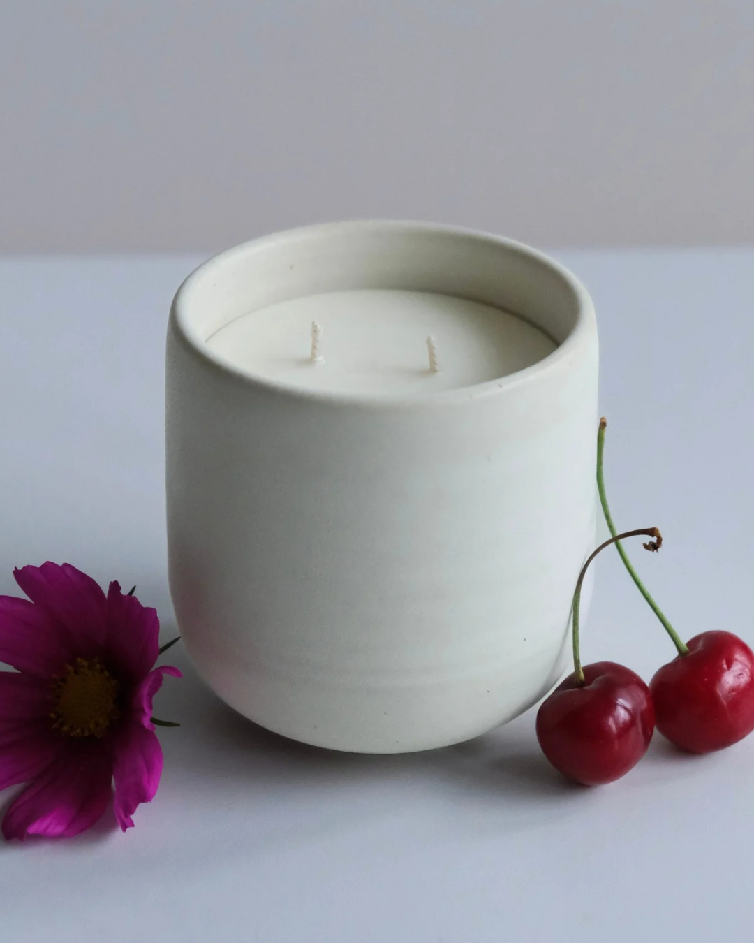 Unsere Cherry Keramik Duftkerzen werden in liebevoller Handarbeit hergestellt, was jede Kerze zu einem Unikat macht. Der Berliner Keramiker Riccardo von blayse ceramic hat die Keramikbehälter liebevoll von Hand geformt und glasiert. Wichtig zu wissen ist, dass durch die Handarbeit nicht jeder Behälter 100%-ig identisch ist. Kleine Abweichungen in Form und Farbe sind möglich und vollkommen erwünscht. Die matt weiße Glasur "white sand" verleiht der Keramikkerze eine zeitlose Schönheit. Nachdem Abrennen der Kerze kannst du den Behälter mit lauwarmem Seifenwasser auswaschen und z.B. als Kaffee-, oder Teetasse einsetzen!